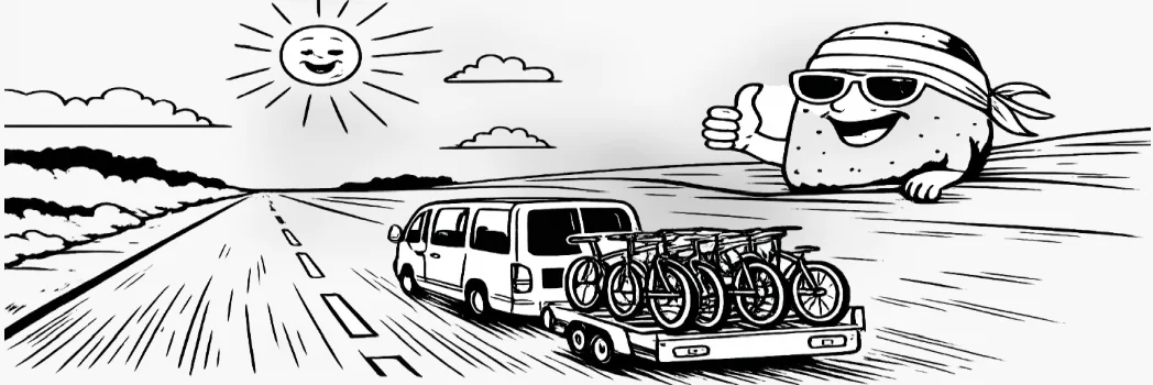 Transport rowerów jest ogarnięty od początku. Jedziemy busem, a rowery jadą na przyczepce, stabilnie zamocowane – bez upychania, bez kombinowania i bez ryzyka, że coś się przesunie po drodze. Dotyczy to zarówno zwykłych rowerów, jak i elektrycznych, które są cięższe i wymagają sensownego przewozu.Nie korzystamy z dachów ani przypadkowych rozwiązań. Sprzęt ma dojechać na miejsce w takim stanie, w jakim wyjechał – i tak to działa. Ty wsiadasz i jedziesz, bez zastanawiania się, czy coś się po drodze nie poluzowało.